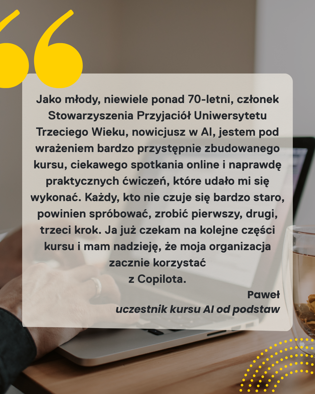 Zamiast przeznaczać środki finansowe na kursy o AI, weź udział za darmo i dzięki zdobytej wiedzy zwiększ budżet swojej organizacji: